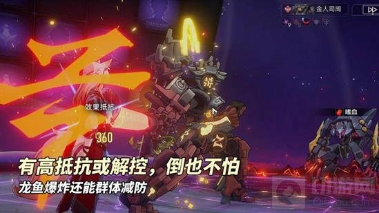 技能机制:金人司阍在我方施放3次战技/终结技后,立即召唤两只灯昼龙鱼,并拉条自身。