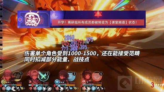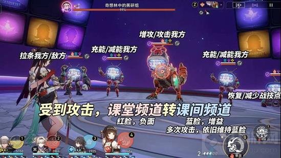 行动条新增一个“期末晚会”行动单位,敌人行动时解除所有负面效果并施放高额群体伤害,需通过击破敌方单位延缓行动。