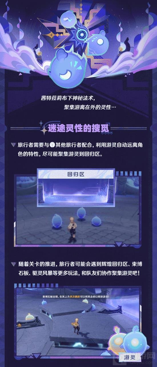 在这个玩法中,旅行者需要与队友配合,利用“游灵”会自动远离角色的特性,将游灵引导到特定的“回归区”。