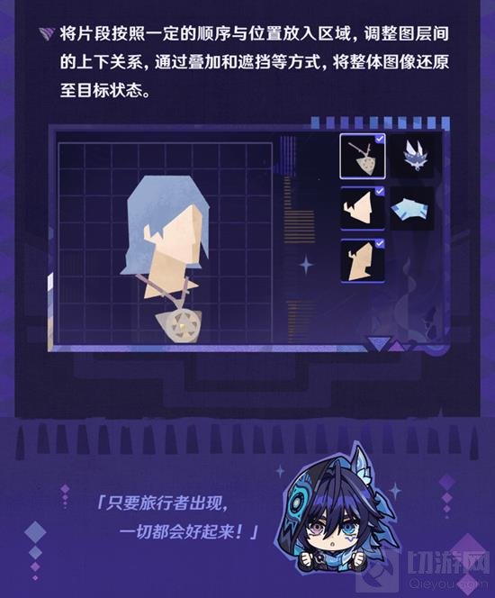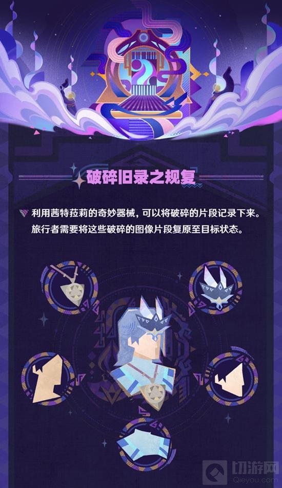 旅行者将使用茜特菈莉提供的特殊器械修复破碎的图像,通过拼接图像片段,复原一张完整的画面。