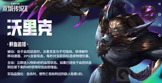 狼人被动技能在嗜血期间,沃里克移动得更快、获得全能吸血和攻击速度,并每秒对目标造成额外物理伤害,且在击杀一定数量的敌人后,沃里克进入不可阻挡和嗜血状态,持续至战斗环节结束。主动技能:沃里克进入嗜血状态,持续数秒。被动加主动使得狼人成为真正意义上的“单挑之神”!