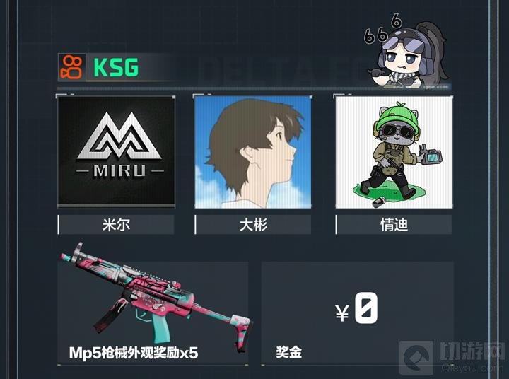 队员为米尔、大彬、情迪,获得MP5枪械外观奖励 * 5。