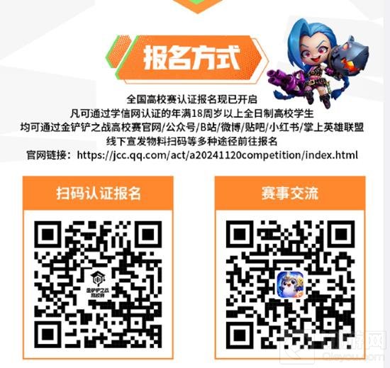 马上行动!全国高校赛认证报名现已开启,全体高校玩家均可参与,通过金铲铲之战高校赛官网/公众号/B站/微博/贴吧/小红书/掌上英雄联盟/线下宣发物料扫码等多种途径前往报名,轻松报名,丝滑参赛!