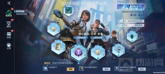 此次活动时间为12月29日开启,玩家点击限时活动即可参与“零界突破”活动,小伙伴们每日完成任务即可领取相应的奖励,每日除了任务奖励外,还可以领取一个大奖,完成任意4天任务即可在12月7日领取全新角色零-新生。