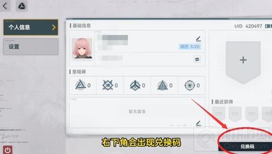 找到“兑换码”按键并点击,在跳出的框依次输入上述提供的三组兑换码之一(33DRBRJJXB、4BQ3NLFFQM、GFL2GIFT)即可。