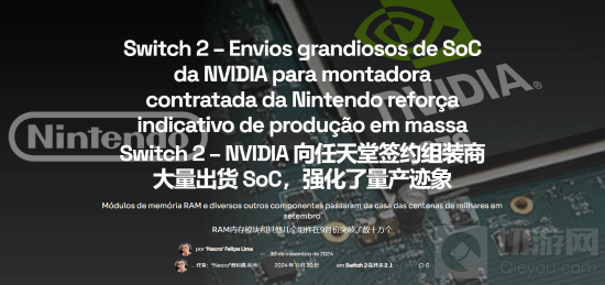 用户LiC(主要活跃于Famiboards论坛)的最新研究显示,截至2024年9月,NVIDIA已向位于越南的任天堂合作组装厂运送了超过83.6万枚T239 SoC(系统芯片)。T239 SoC被认为是Nintendo Switch 2的核心组件,大规模的出货量可能意味着工厂已开始为主机组装做准备,至少自9月底起已进入组件的批量生产阶段。