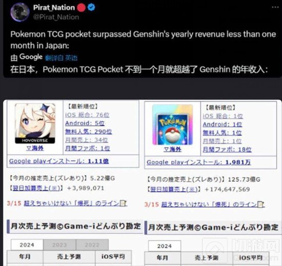 10月30日,备受期待的《宝可梦TCG口袋版》在日本市场正式推出。据游戏博主Pirat_Nation透露,该游戏在短短一个月内的营收已达到125.73亿日元,超过了《原神》一整年120.88亿日元的流水。