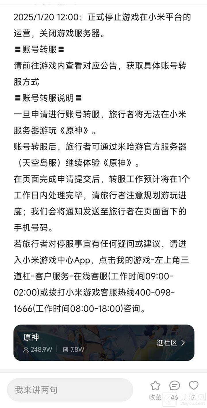 小米服务器的停运是一次正常的商业调整,对大部分玩家而言,只需完成转服操作即可无缝过渡至官服。希望本篇攻略能为受影响的玩家提供实用帮助,同时期待《原神》在未来带来更多精彩内容。祝愿大家在提瓦特大陆的旅途中继续探索,收获更多乐趣!