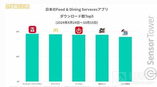 根据Sensor Tower数据,2024年8月24日至10月15日期间,肯德基官方App在日本食品和餐饮服务应用程序下载量中排名第一。