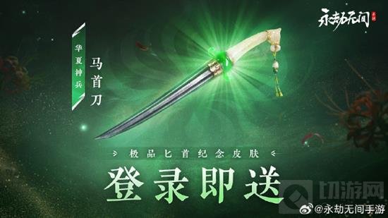 玩家登录《永劫无间》手游后,前往游戏邮箱即可免费领取极品匕首纪念皮肤【华夏神兵·马首刀】。