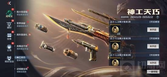 领取的神工天巧抽奖币可以在2025年1月1日登场的神工天巧夺宝当中进行抽奖,目前已知的是除了备受期待的英雄级武器M4A1-神工天巧会以大奖的形式加入奖池中,USP-神工天巧,唐刀-神工天巧和神工天巧投掷套装也会加入到本次奖池中,大家可以好好期待一下。