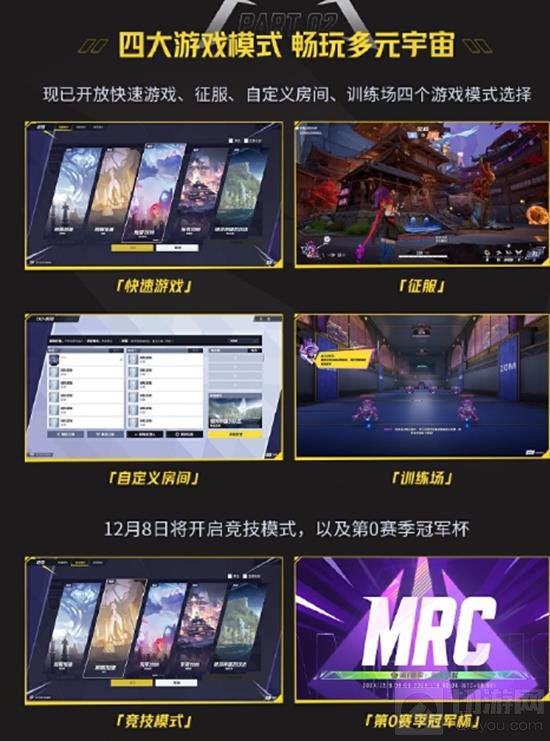 四大游戏模式:快速游戏、征服、自定义房间、训练场现已开放。