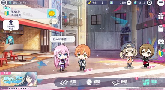 ●地图会不定时出现 MORE MORE JUMP!成员和虚拟歌手的区域对话,各位居民可以点击阅读,首次阅读还能获得水晶。