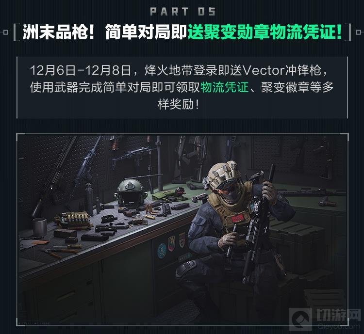 - 烽火地带登录即可领取Vector冲锋枪,完成对局后还能获取物流凭证、聚变勋章等奖励。