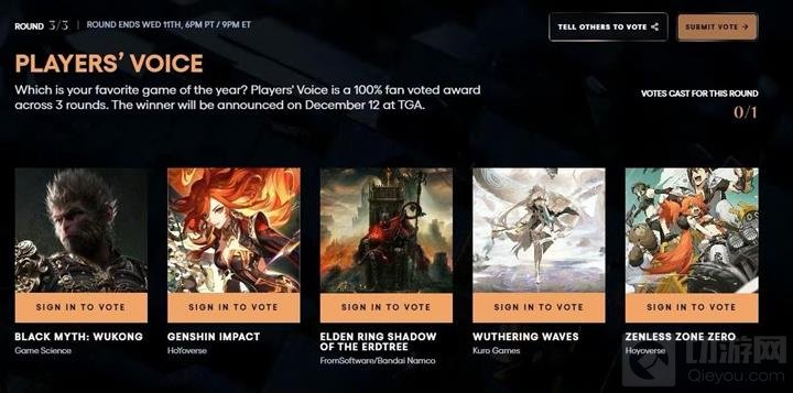 玩家可通过TGA官方网站参与投票,活动将持续至TGA正式颁奖典礼前。想要支持自己喜爱的作品,现在正是关键时刻!