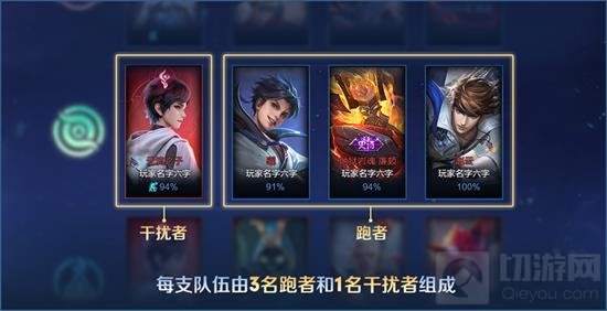 参与玩家:共计12名玩家参与游戏,分为3队,每队由3名跑者和1名干扰者组成。
