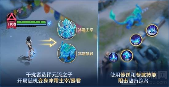 默认选择元流之子,开局后随机变身成为冰霜主宰/冰霜暴君。
