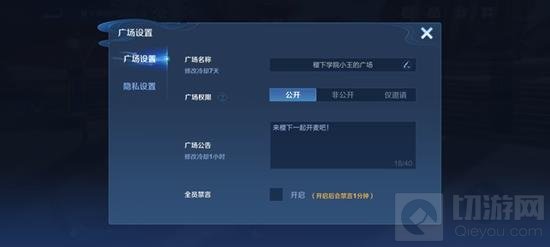 创建私人广场:部分玩家将被随机抽取,临时开放创建私人广场的权限。玩家可以创建属于自己的私人广场,设定主题和公告,禁言和踢出广场内的玩家。