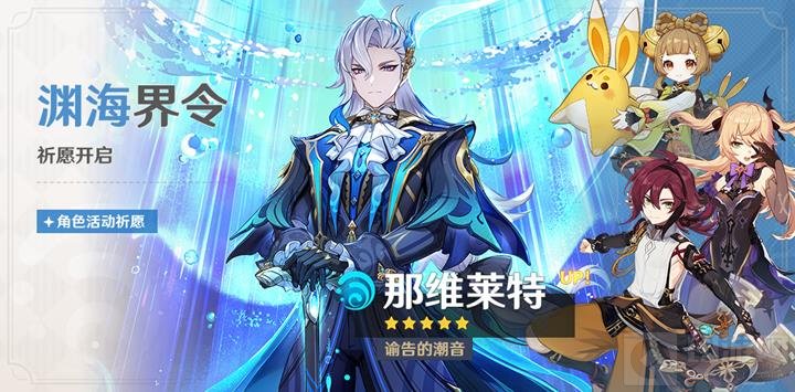 「渊海界令」活动祈愿现已开启,将持续至2024年12月31日14:59。活动期间,限定的5星角色「谕告的潮音·那维莱特(水)」的祈愿获取概率将大幅提升。与「陵薮市朝」活动祈愿类似,4星角色「心朝乂安·鹿野院平藏(风)」、「断罪皇女!!·菲谢尔(雷)」和「仙蕊玲珑·瑶瑶(草)」的祈愿获取概率也将得到提升。这次祈愿属于「角色活动祈愿」,其祈愿次数保底与「角色活动祈愿-2」完全共享,并且与其他祈愿的祈愿次数保底相互独立计算。同样,在祈愿开启期间,玩家可以参与「且试身手」角色试用活动,通过挑战指定关卡来获得奖励。