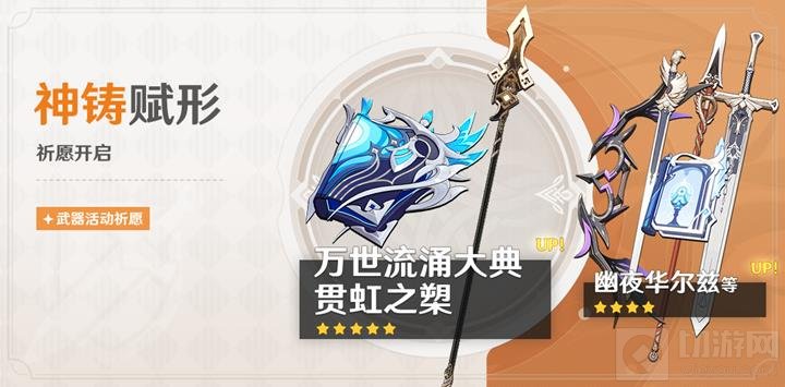 《原神》中的「神铸赋形」活动祈愿已经开启,将持续至2024年12月31日14:59。在这次活动中,限定的5星武器「法器·万世流涌大典」和「长柄武器·贯虹之槊」的祈愿获取概率将得到显著提升。