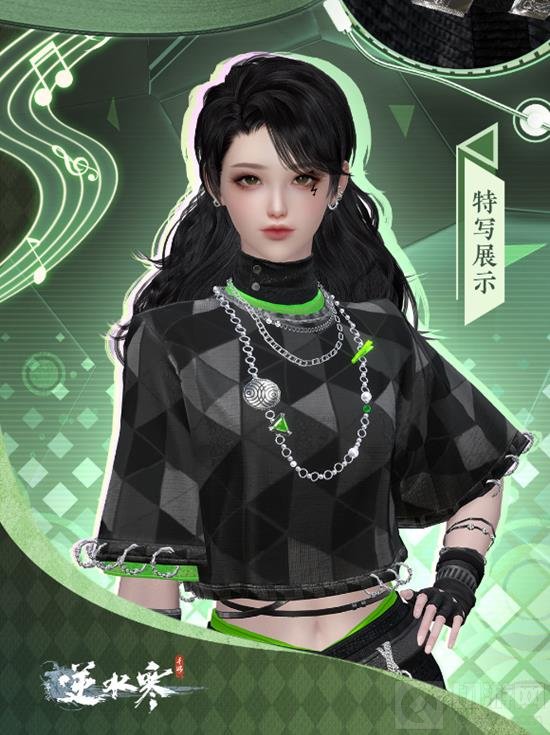 烫画DIY功能:【律动音阶】时装不仅支持烫画DIY功能,也支持时装染色功能,这意味着玩家可以为时装染上心仪的色彩,并巧妙融入个性化的烫画设计,每一件衣服都可以独一无二。