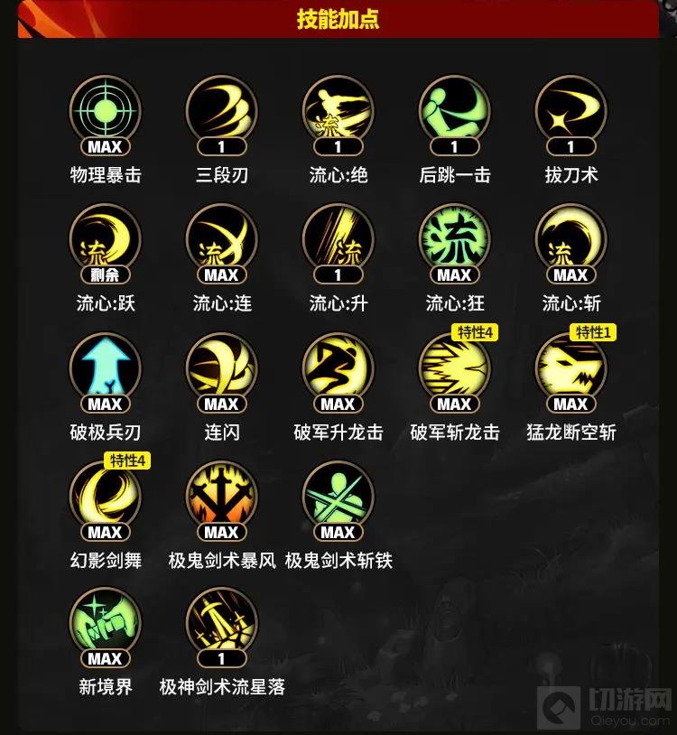 剑魂的技能加点主要分为基础技能、核心技能和特性技能。