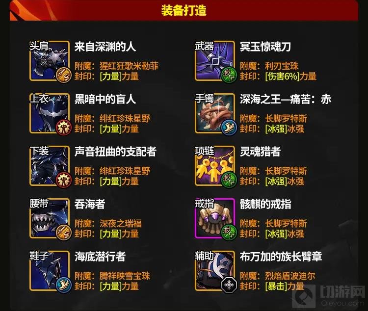 项链:灵魂猎者,附魔长脚罗特斯,封印增加冰强。