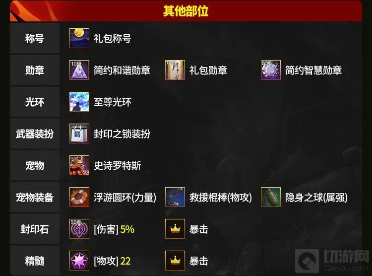 封印石:选择伤害5%和暴击的封印石,提升输出。