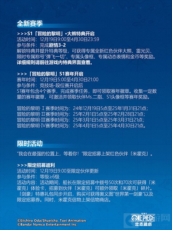 以上就是小编为大家带来的航海王雄心壮志开服S1赛季活动信息汇总,希望能帮到大家,想要了解更多航海王游戏相关的攻略和i咨询,请关注切游网,你们的支持是我们最大的动力。