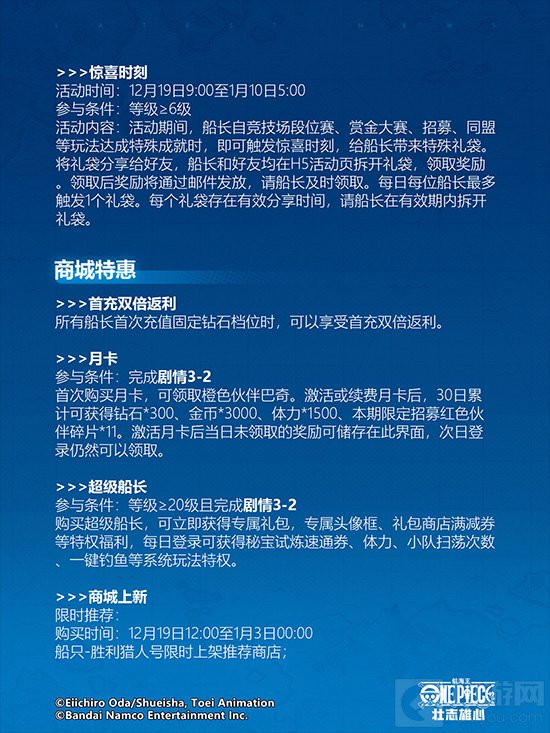 1万+金币,瓦帕、Mr.2、日奈、烟鬼、阿龙、克里克、路飞、佐罗、奈美、撒谎布、乔巴、山智、爱比达等多位伙伴活跃可得!