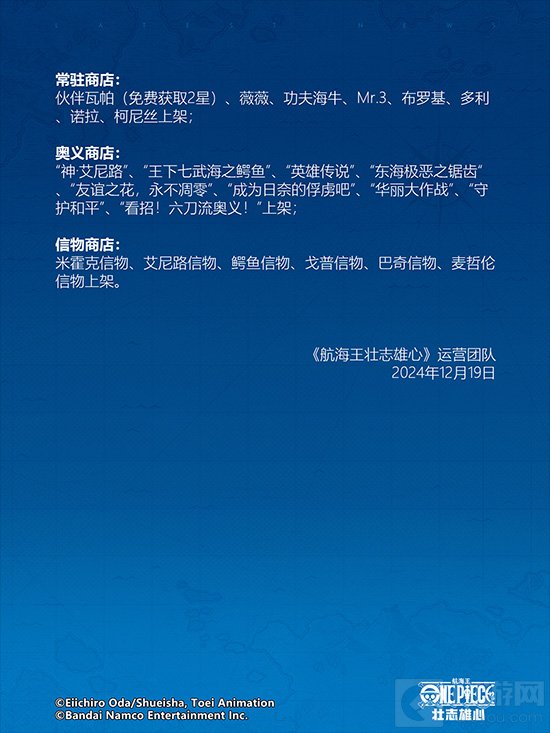 伙伴瓦帕(免费获取2星)、薇薇、功夫海牛、Mr.3、布罗基、多利、诺拉、柯尼丝上架;