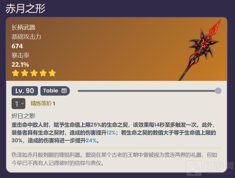 赤月之形(专武) 赤月之形是阿蕾奇诺的专属武器,其特点是通过重击赋予生命之契,进一步提升普攻伤害。它提供高额攻击力与火元素伤害加成,使得阿蕾奇诺的输出能力达到顶尖水平。