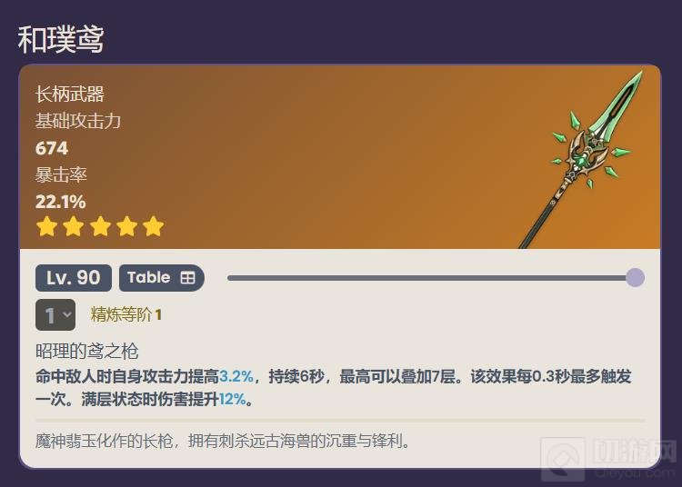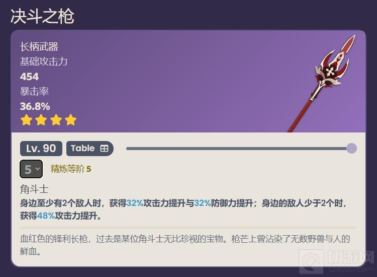决斗之枪 决斗之枪提供的暴击率提升与低血量伤害加成非常契合阿蕾奇诺的输出模式,是性价比极高的四星武器选择。