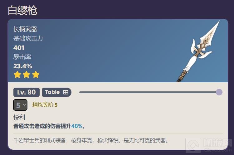 白缨枪 作为易获取的三星武器,其高额攻击力加成对于资源有限的玩家来说非常实用。