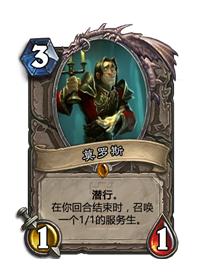 3.其他。比如螺丝,大帝等这些卡牌描述为“在你的回合结束”发挥功效的卡,或者本来就是11或者更不好的身材,但本身并不是白板的随从,比如银色侍从,耐心的刺客等等。这些牌拉出来也是赚到的,甚至大赚的。