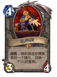 所以巴内斯这张卡的发挥空间还是非常大的。就我个人感觉,未来的盗贼和猎人将会倾向于使用这张卡牌,圣骑士可能也会使用。原因就在于亡语卡。另外还可以配合逐星来快速挖宝,找到金猴,然后回手打出,这算是一种黑科技了,希望玩家们多多开发,未来的天梯和比赛相信会看到他的身影。
