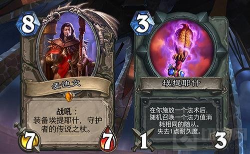 877的身材,加上本身人物属性让我们很容易就联想到法师橙卡罗宁。相比罗宁非常直接的给三张奥数飞弹,麦迪文则会为你装备一把三耐久的法杖,相当于使用三次集合石效果的武器。这个效果与奥数飞弹各有千秋,甚至在某种程度上要超过三张奥数飞弹的价值。等于说给了你三次免费召唤随从的机会,而且条件允许时你可以单回合用完。想想集合石的价值就知道有多厉害了。而且这是张中立橙卡,意味着任何职业都可以使用,这对盗贼,战士这俩职业而言将意味着更大的开发价值,由此也将引发各种大小软效应就不再提醒了。