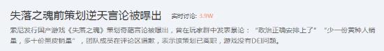 PS中国之星《失落之魂》的前策划Vivian被曝出曾在玩家群中发表不当言论,包括“政治正确安排上了”和“少一份黄种人销量,多十份黑皮销量”,这些言论引发了网友的广泛热议。