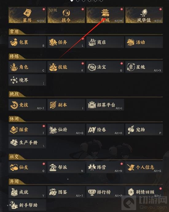 点击屏幕上方的“商城”按钮,进入游戏商城页面。
