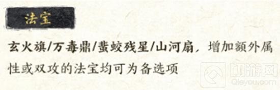 玄火旗/万毒鼎/蜚蛟残星/山河扇:这些法宝可以增加额外属性或双攻,适合作为备选项。