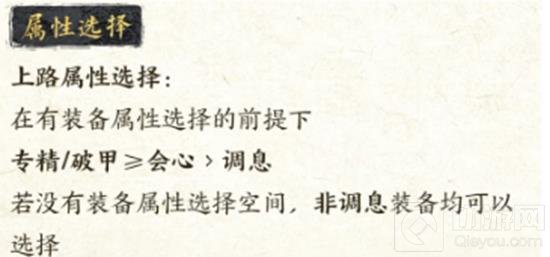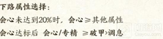 会心/专精破甲;调息:在会心达到20%后,可以开始平衡专精和破甲,调息仍然是最后考虑的属性。