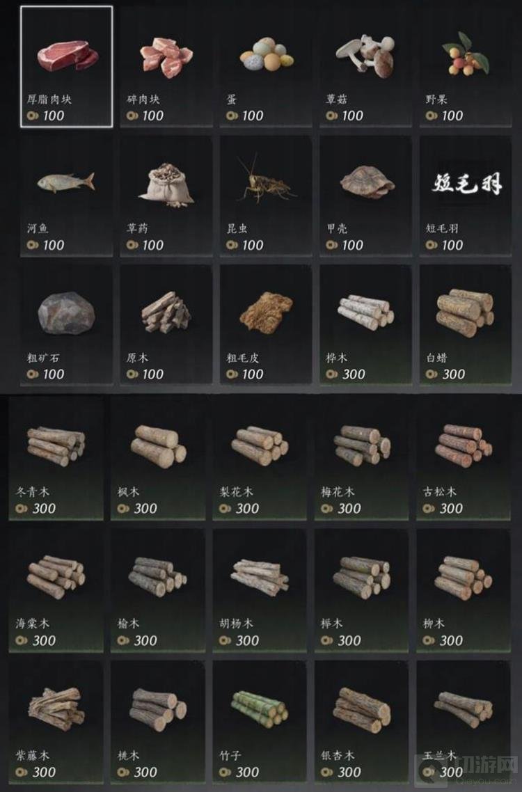 胡牛儿:此商家售卖火箭、食物、鱼竿、鱼饵、盛景路牌及各种常用材料,每天都有大量库存可供选择【宋元】。