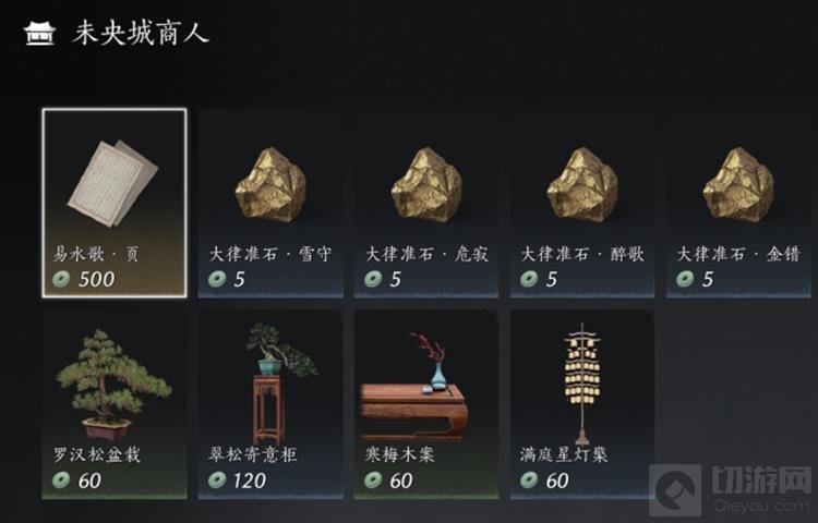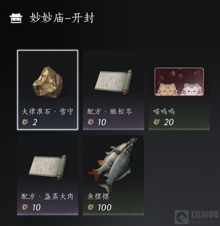 妙妙庙商店(鬼市子):除了律准石外,还提供酿松苓、盏蒸大肉配方和外观道具,均有限购要求【妙妙币】。