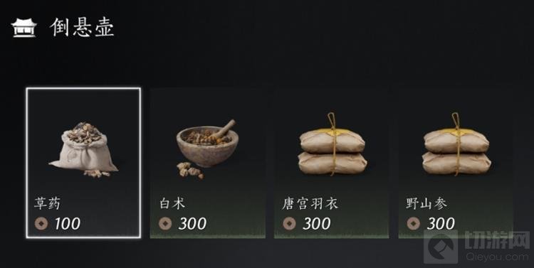 涂山允-倒悬壶:同样位于鬼市子,出售草药、白术、唐宫羽衣、野山参等稀有药材,每周限供99件【宋元】。