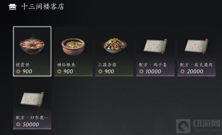 祁天元:十三间楼客栈内的祁天元提供了鸡子、归参鹿肉汤、旋炙肉配方等美食原料【宋元】。