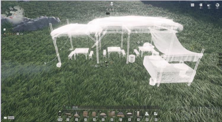 玩家可以通过按F1键进入建造模式,开始自己的建筑之旅。在建造模式下,玩家可以将包裹里的组件摆放至合适的区域内,例如梯子、木工台等。对于移动端的玩家,可以通过主界面左侧的轮盘选择进入建造模式。