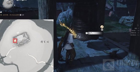 第二口钟:在将军祠左下方的亭子内,玩家需对钟使用运气技能。