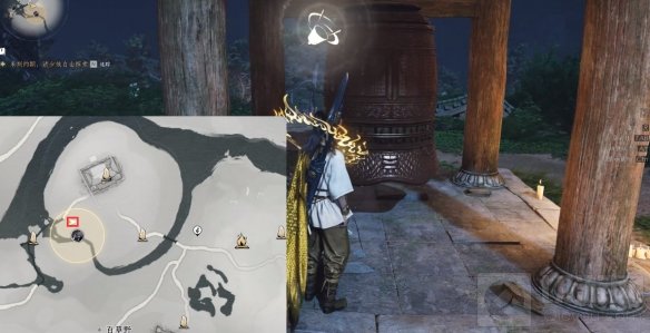 第四口钟:在佛爷寨正下方的亭子内,同样需要使用运气技能。