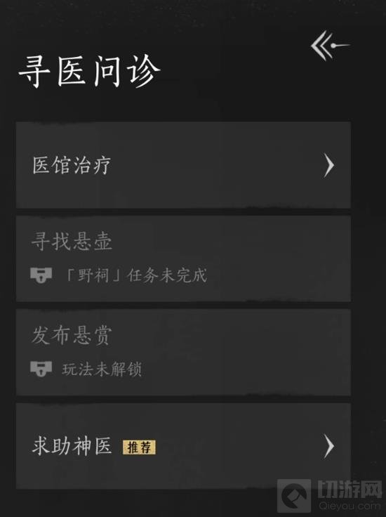 目前有四种方式可以解决,第一种就是可以去医馆治疗,医馆会在后面的主线章节里面解锁的。