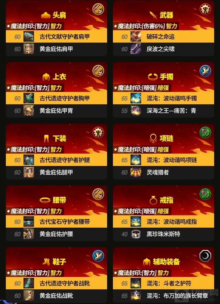 这些装备的选择旨在提供高智力和魔法攻击力加成,同时兼顾防御和生存能力。